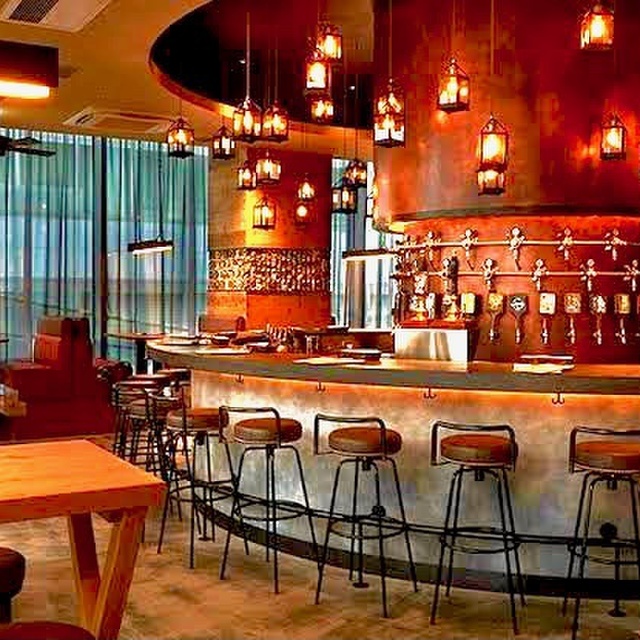 ムーディーなライティングの都会的な店内でビール!ビール!